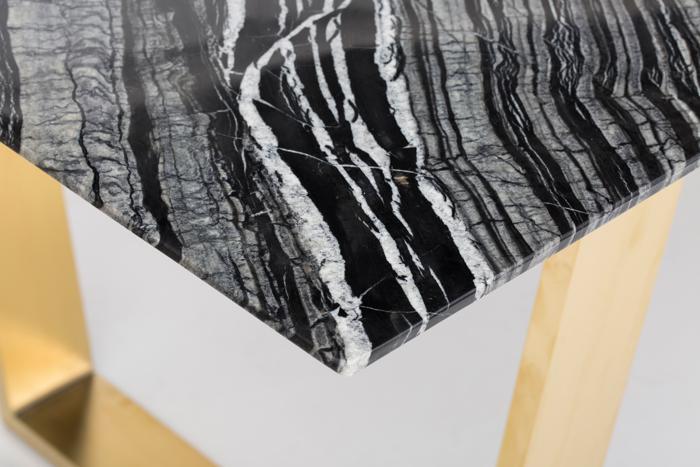An Art Deco coffee table with gold legs and a black marble top is a luxurious and stylish piece of furniture that can add a touch of glamour to any living room. The table features a geometric design, with sleek and angular lines that are characteristic of the Art Deco style. The legs of the table are made from metal and have a shiny gold finish that adds a touch of opulence to the design. The tabletop is made from black marble, which has a natural veined pattern that gives each piece a unique and luxurious appearance. The marble top is smooth and polished, creating a sleek and sophisticated surface for displaying books, drinks, or decorative accessories. The combination of gold and black creates a striking contrast that is both bold and elegant. The Art Deco style of the table is both timeless and glamorous, making it a perfect complement to a range of decor styles, from contemporary to vintage-inspired. Overall, an Art Deco coffee table with gold legs and a black marble top is a luxurious and stylish addition to any living room. Its unique and striking design, combined with its high-quality materials and craftsmanship, make it a standout piece of furniture that can elevate the look and feel of any space.