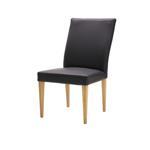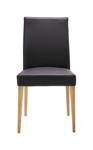 This chair with leather upholstery features a sturdy frame and legs. The seat and backrest are covered in high-quality leather, which may be smooth or textured depending on the design. The leather is stretched taut over a layer of padding to provide comfort and support for the person sitting in the chair. The chair has a high backrest making it ideal for the dining room or a study room. Overall, a chair with leather upholstery is typically sleek and modern in design, providing a comfortable and stylish seating option for any room.