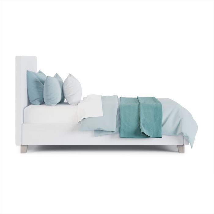 A twin size bed with fabric upholstery in a modern style is a sleek and stylish piece of furniture that can add a touch of sophistication to any bedroom. The bed typically features a simple and minimalistic design, with clean lines and geometric shapes that are characteristic of modern style. The frame of the bed is made from wood, with a low profile that creates a sleek and contemporary look. The fabric upholstery covers the headboard, footboard, and side rails of the bed, providing a soft and comfortable surface to lean against or rest on. The size of the bed is twin, which makes it an ideal choice for smaller bedrooms or guest rooms. It can be paired with a range of bedding and accessories to create a cohesive and stylish look that reflects your personal style. Overall, a twin size bed with fabric upholstery in a modern style is a sleek and sophisticated piece of furniture that can elevate the look and feel of any bedroom. Its simple yet stylish design, combined with its comfortable and soft upholstery, make it a perfect place to rest and relax in style.