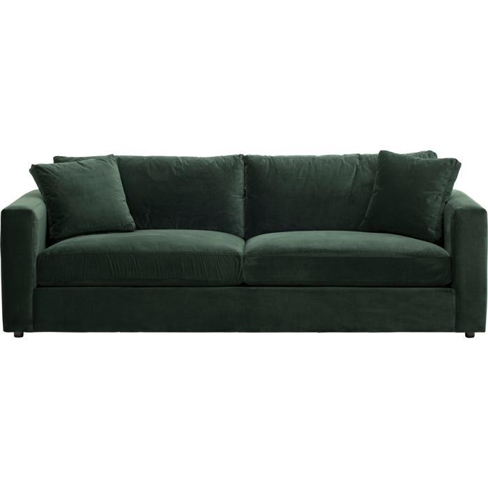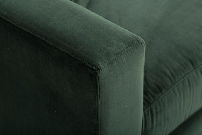 A traditional three-seater sofa is a classic and elegant piece of furniture that can add a touch of sophistication to any living room or sitting area. The sofa features a sturdy wooden frame that is designed to provide durability and stability, ensuring that the sofa can withstand regular use over time. The sofa is upholstered in a rich emerald-colored fabric, providing a vibrant and eye-catching focal point in the room. The fabric is soft and comfortable to the touch, allowing you to relax and unwind in style. The sofa is equipped with two large cushions, which are filled with a high-quality foam material, providing excellent support and comfort for extended periods of sitting. The backrest and armrests of the sofa are filled with a soft and plush material, allowing you to sink into the sofa and relax after a long day. The traditional three-seater sofa is a versatile piece of furniture that can complement a range of interior design styles, from classic and traditional to more modern and eclectic. It can be paired with a variety of decorative accents, such as pillows, throws, and rugs, to create a cohesive and stylish living space. Overall, a traditional three-seater sofa in emerald fabric is a timeless and elegant piece of furniture that can provide both comfort and style to any living room or sitting area. Its classic design, high-quality materials, and practical features make it a functional and stylish choice for any home.